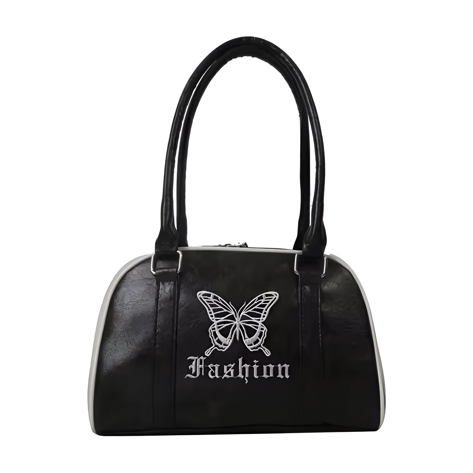 This unique handbag features an edgy, design with a structured silhouette that adds a contemporary flair. An accent shoulder strap allows for versatile carrying options, making it suitable for casual outings or fashion-forward events. The overall structure combines playful elements with a modern aesthetic, making it a statement accessory. Turn heads.