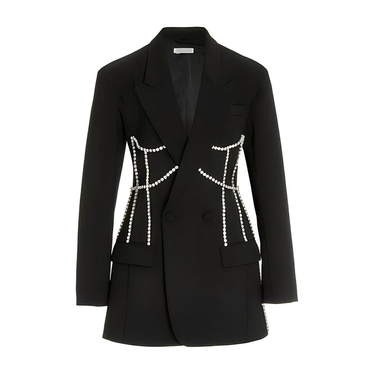 Indulge in luxury. Elevate your style with the Freya Rhinestone Blazer.