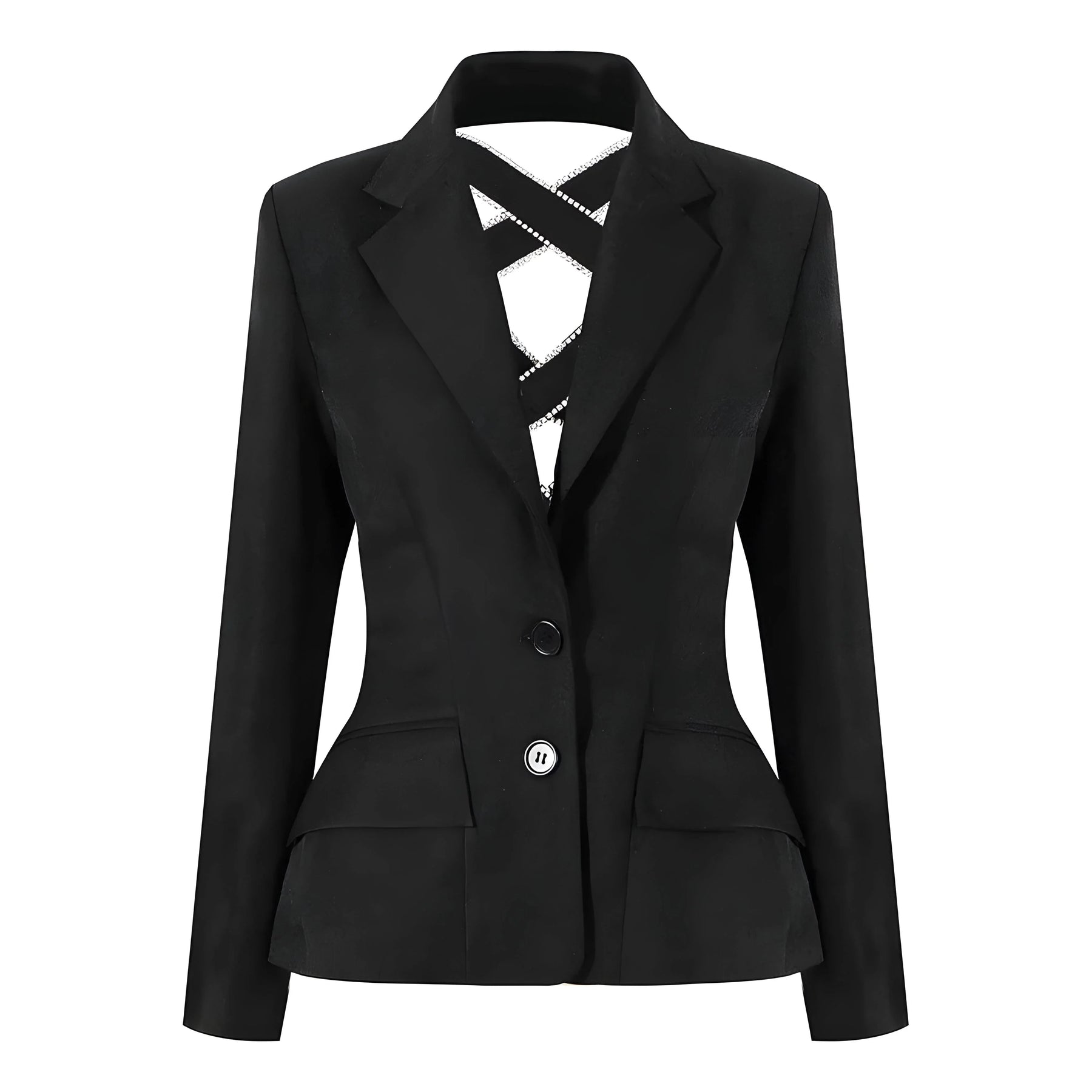 Indulge in luxury. Elevate your style with the Jocelyn Open-Back Blazer.