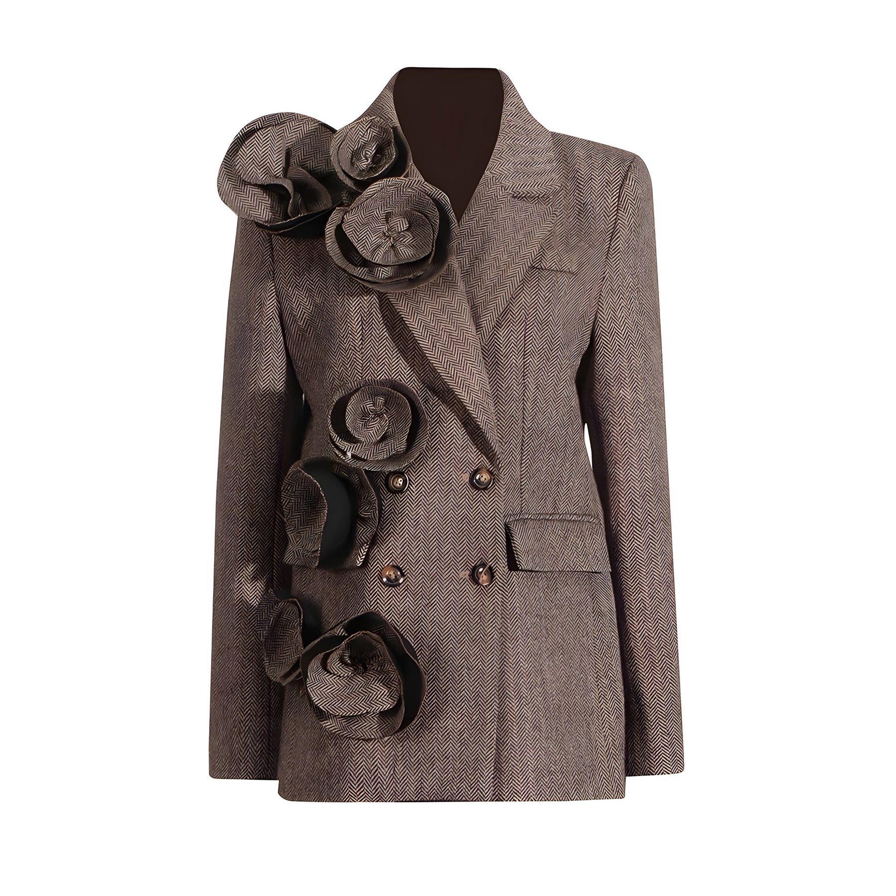 This stylish blazer features a modern and edgy design, characterized by a tailored fit and double-breasted front. The blazer has a sleek, open neck and sharp lapels, enhancing its contemporary appeal. It presents a fitted silhouette that flatters the figure, making it ideal for both formal and semi-formal occasions. The overall look balances sophistication with a touch of avant-garde flair. Be exclusive.