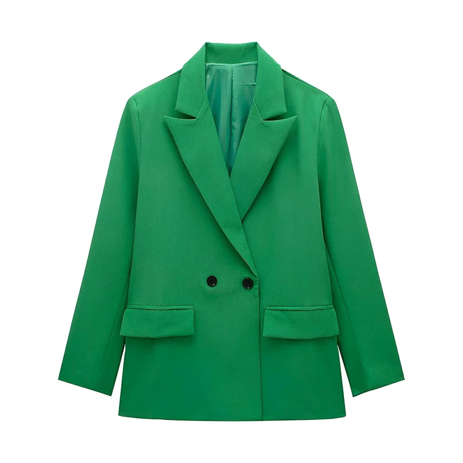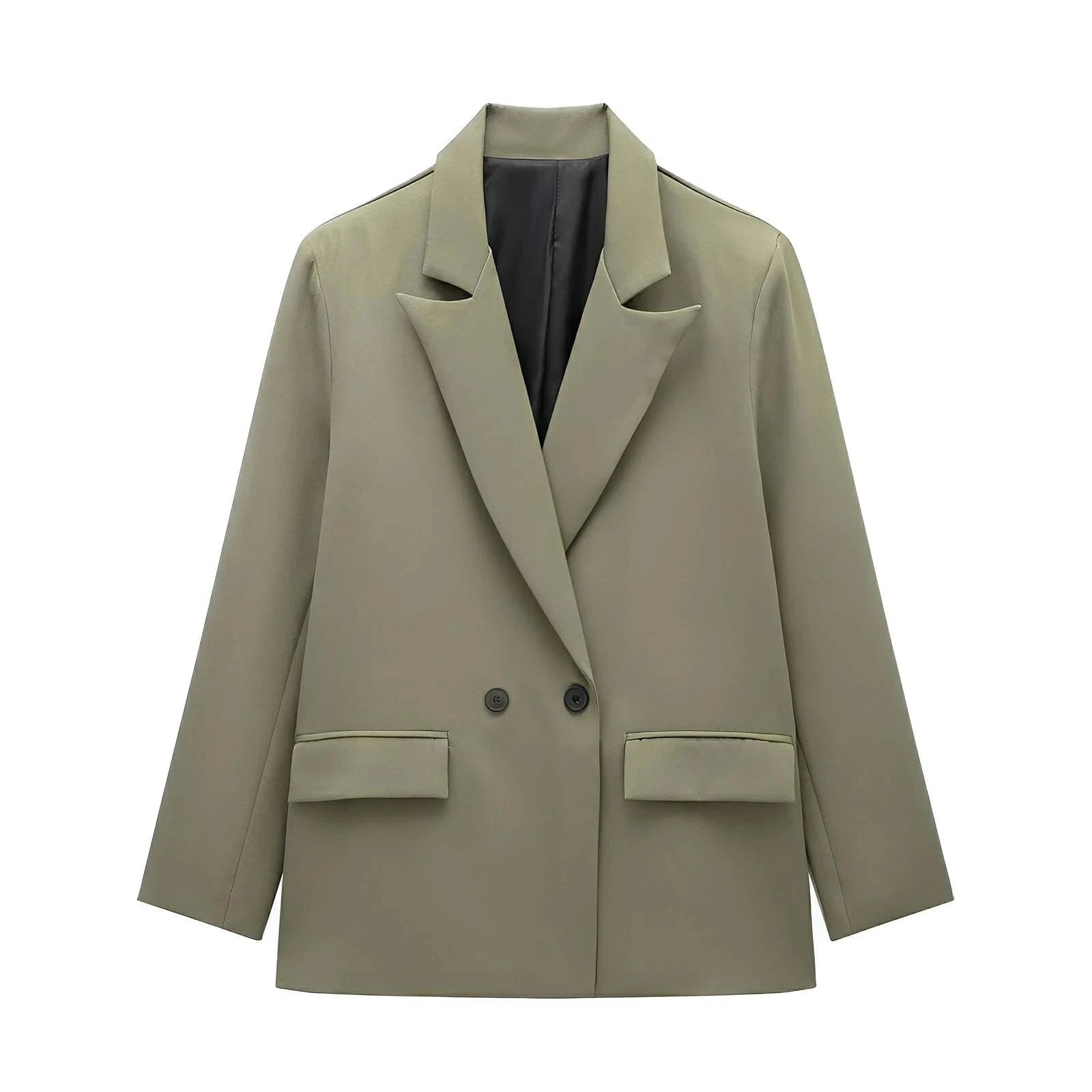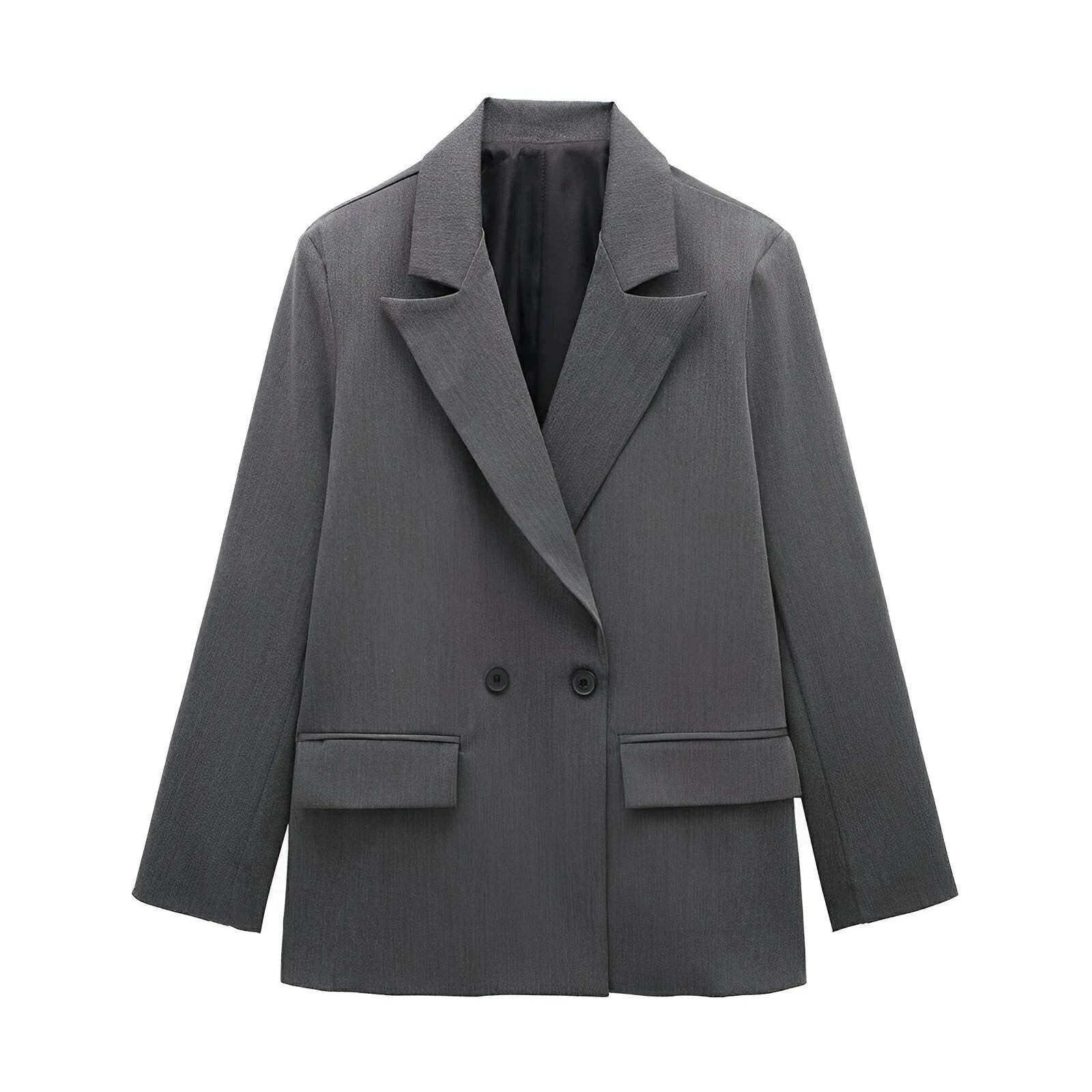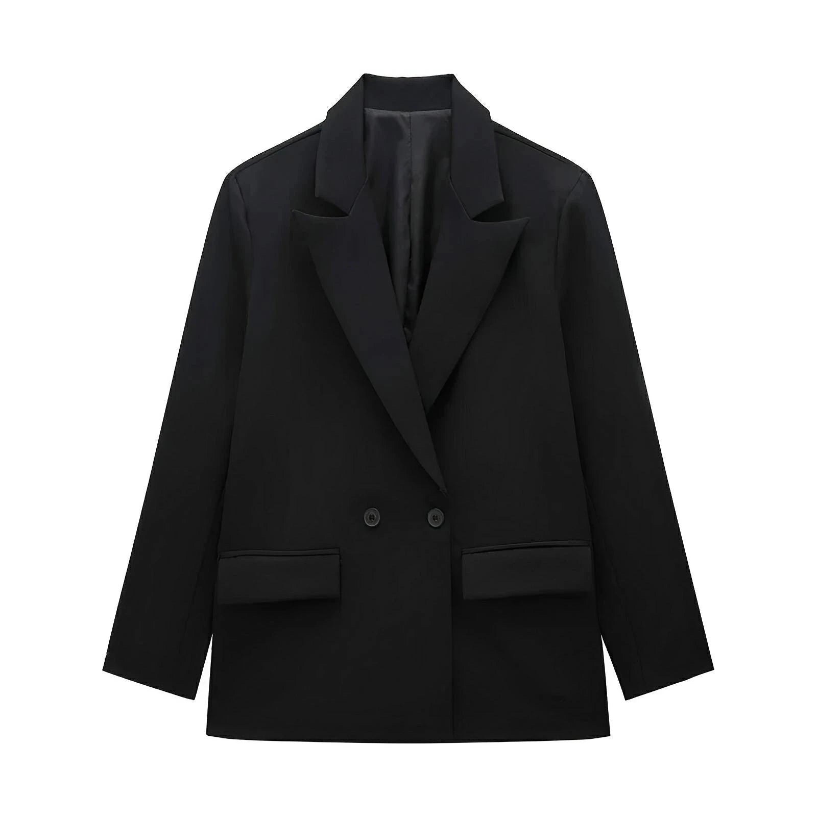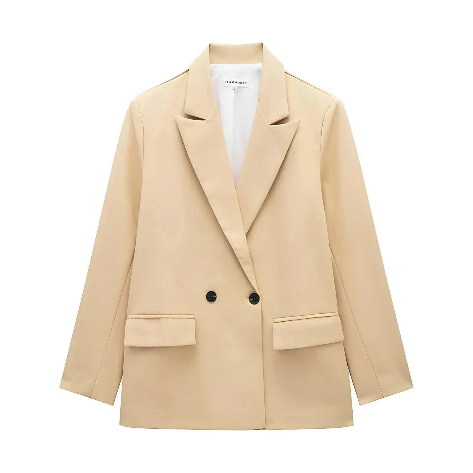 This stylish double-breasted blazer features a classic lapel collar, and is adorned with sleek contrast buttons, exuding a sophisticated aesthetic. The fit is structured yet relaxed, providing a versatile silhouette that can be dressed up for formal occasions or down for a smart-casual look. Command attention.