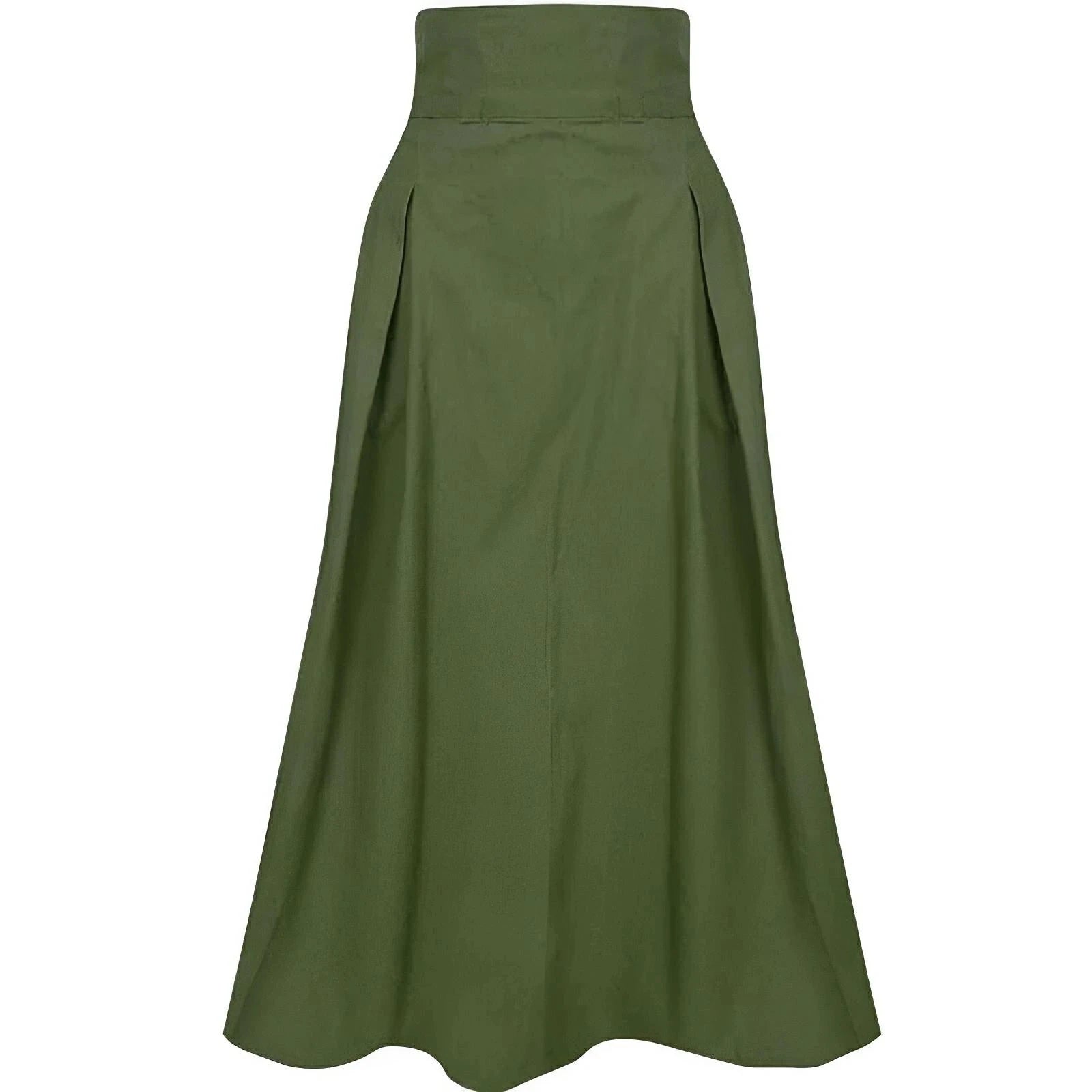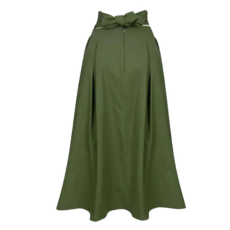 This full-length skirt features stylish, pleating and a knotted waist for a luxurious finish. The skirt has a high waist design, seamlessly flowing down into an A-line silhouette that enhances movement and adds a vintage charm. It emphasizes a classic feminine fit, making it suitable for both casual outings and more formal occasions. Leave your mark.