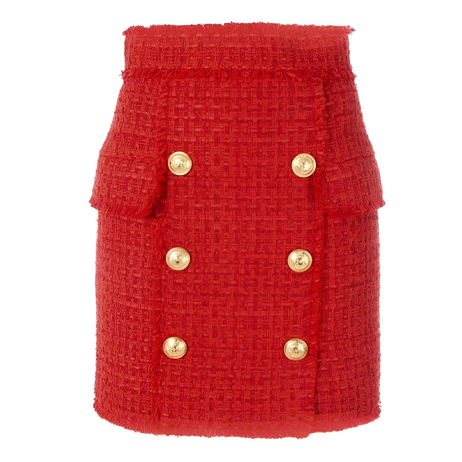 This stylish red skirt features a structured silhouette, giving it a flattering shape that is both chic and sophisticated. It closes at the back with a discreet zipper, ensuring a clean finish. This piece is versatile enough for both formal and casual occasions, pairing well with various tops and footwear. Complete your look.