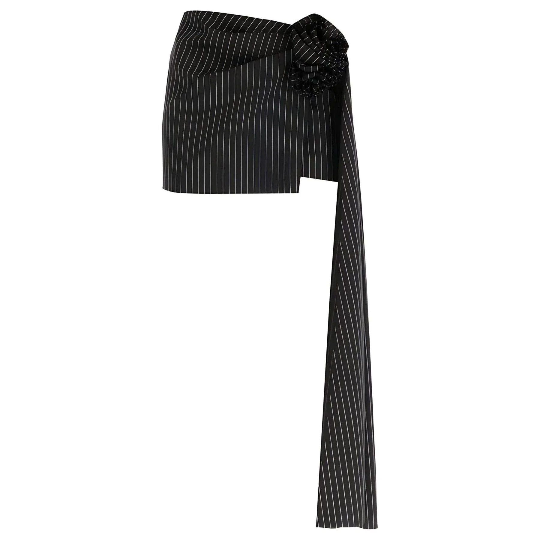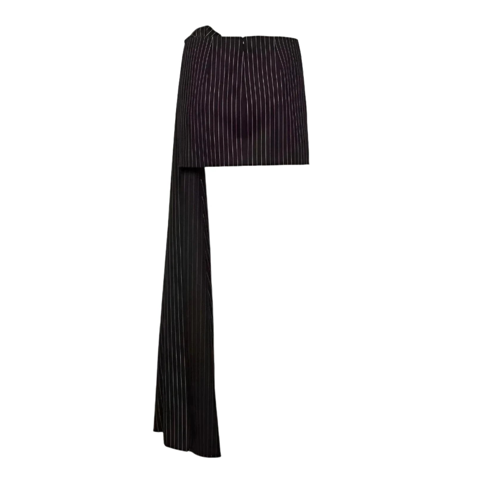 This pinstripe skirt features an asymmetric silhouette, giving it a modern shape that is both chic and sophisticated. It closes at the back with a discreet zipper, ensuring a clean finish. This piece is versatile enough for both formal and casual occasions, pairing well with various tops and footwear. Complete your look.