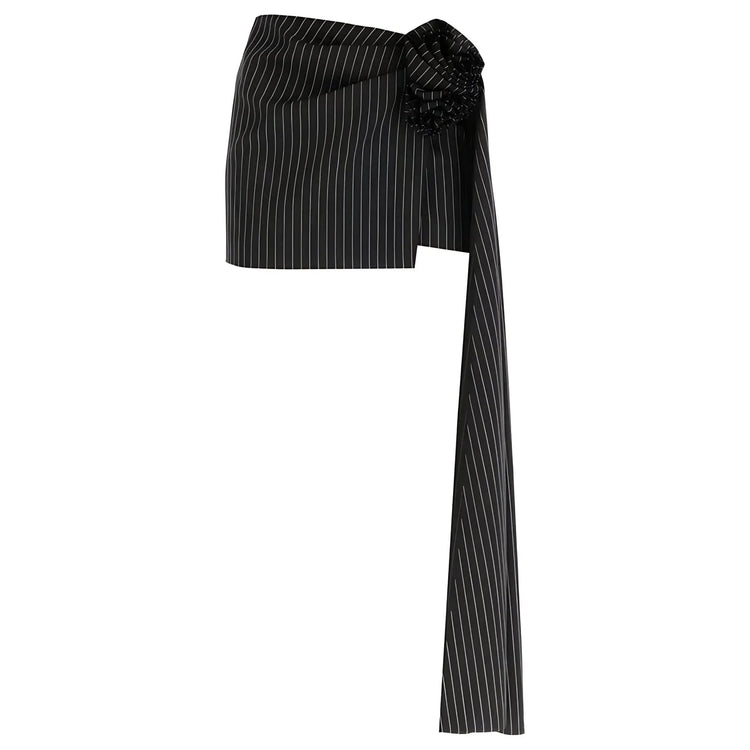 Indulge in luxury. Elevate your style with the Pinstripe Asymmetric Mini Skirt.