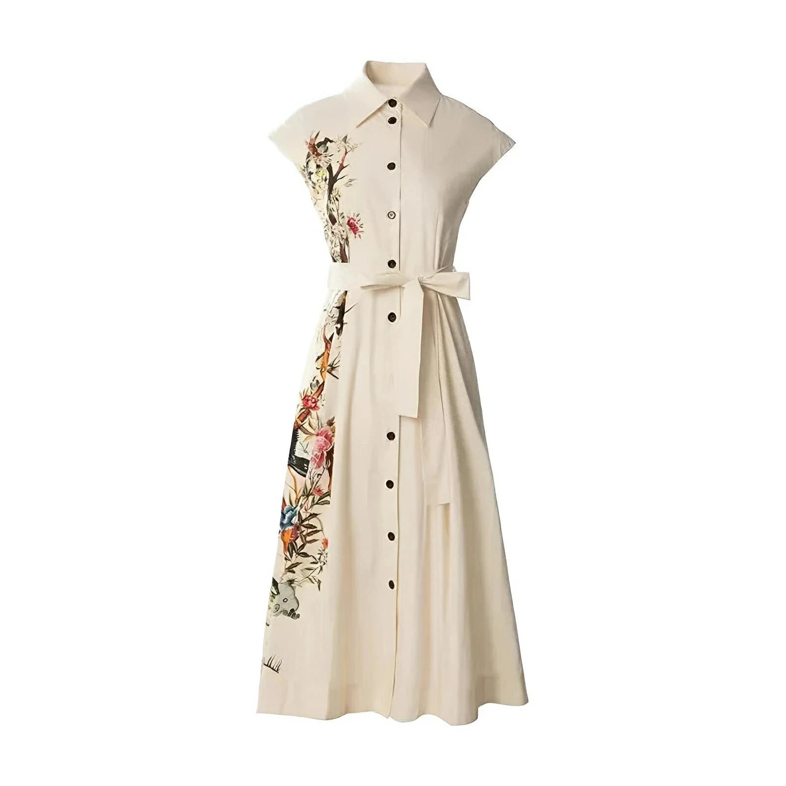 This elegant sleeveless dress offers a soft and versatile foundation for various occasions. The skirt flows gracefully, with pleats adding movement and depth to the overall design. Perfect for a soiree or formal event, this dress effortlessly combines style with comfort. Be timeless.
