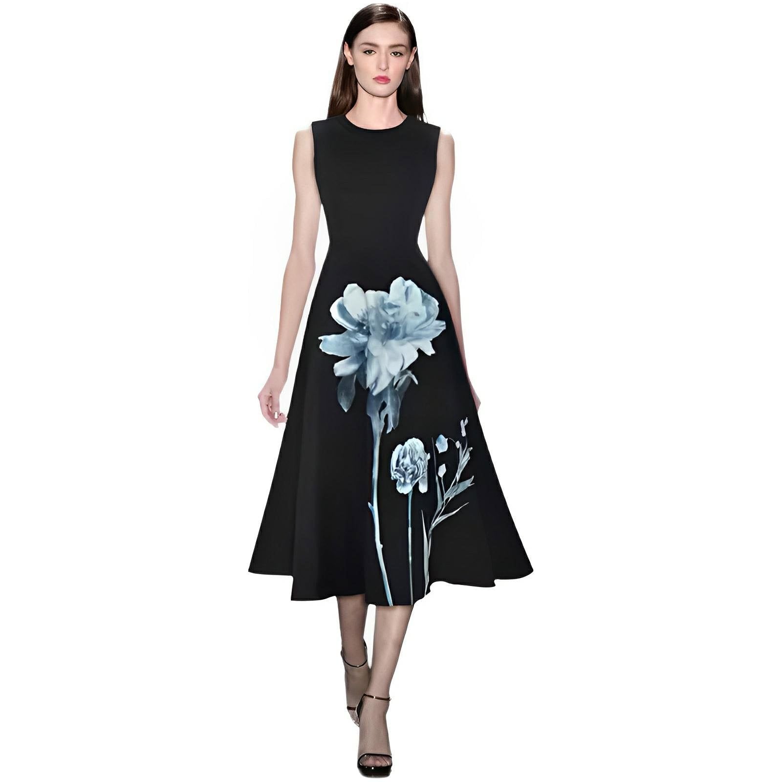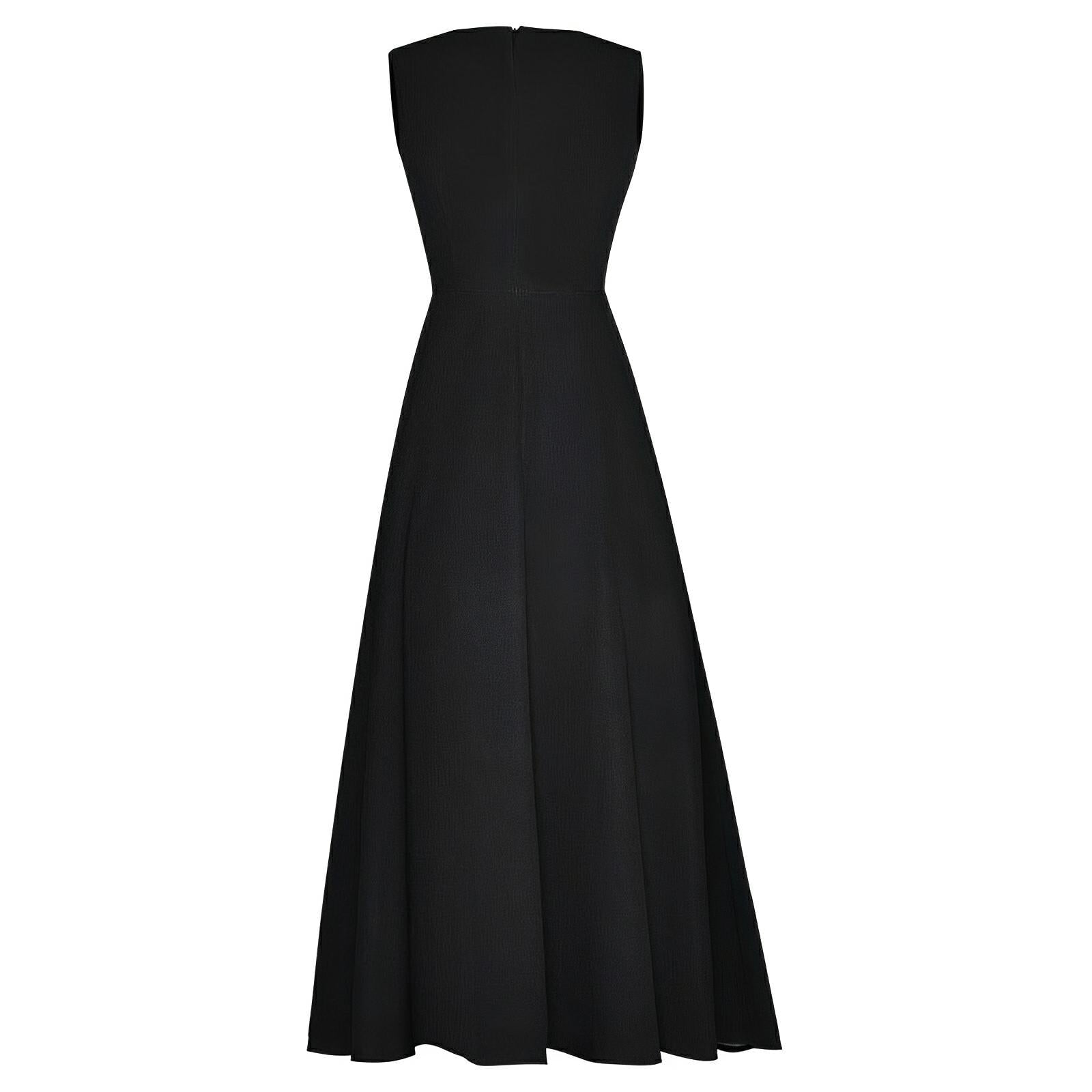 This elegant sleeveless dress offers a vibrant and versatile foundation for various occasions. The skirt flows gracefully, with pleats adding movement and depth to the overall design. Perfect for fashion-forward outings or formal events, this dress effortlessly combines style with comfort. Own the moment.