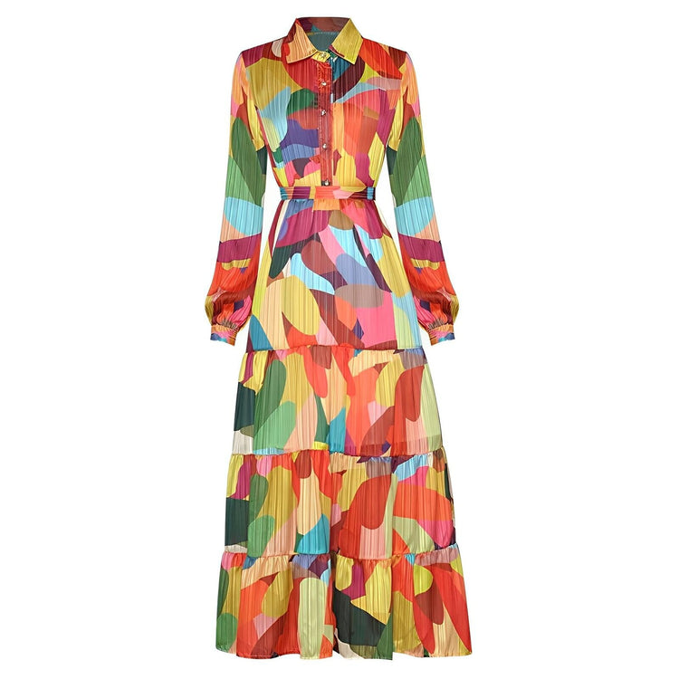 This striking long-sleeve dress offers a vibrant and versatile foundation for various occasions. The skirt flows gracefully, with pleats adding movement and depth to the overall design. Ideal for fashion-forward outings or formal events, this dress effortlessly combines style with comfort. Be remembered.