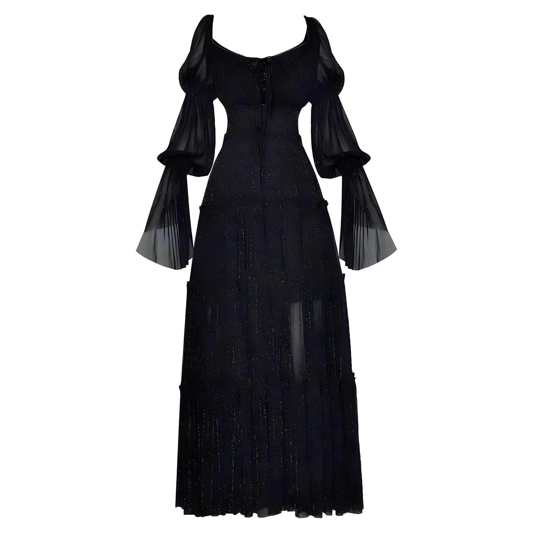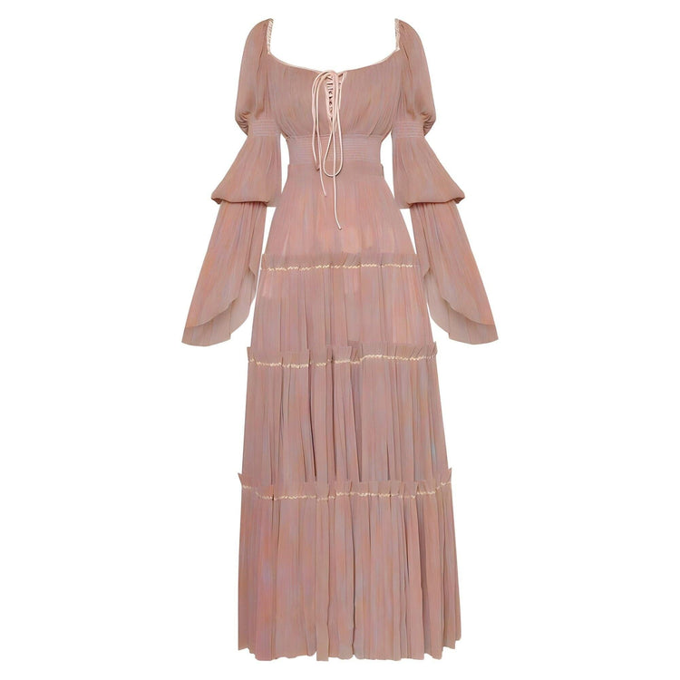 This elegant dress features luxurious pleating set against soft and flowing fabric. The fitted waist accentuates the curves, elegantly defining the silhouette. The versatile mid-length cut completes the dress's refined and feminine aesthetic, making it perfect for formal events or special occasions. Own the moment.
