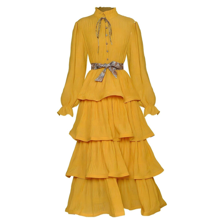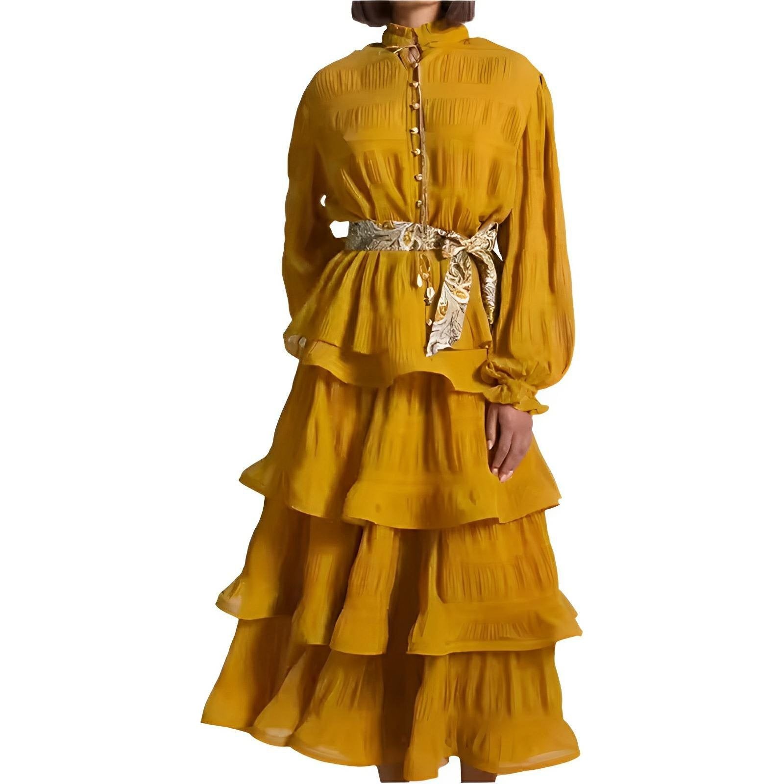 This lantern-sleeve midi dress features soft and flowing fabric, adorned with ruched detailing for a subtle, yet elegant touch. The skirt flows gracefully, with a mid-drift belt adding movement and depth to the overall design. The mid-length cut provides versatility, making it suitable for various occasions, from casual gatherings to formal events. Leave a lasting impression.