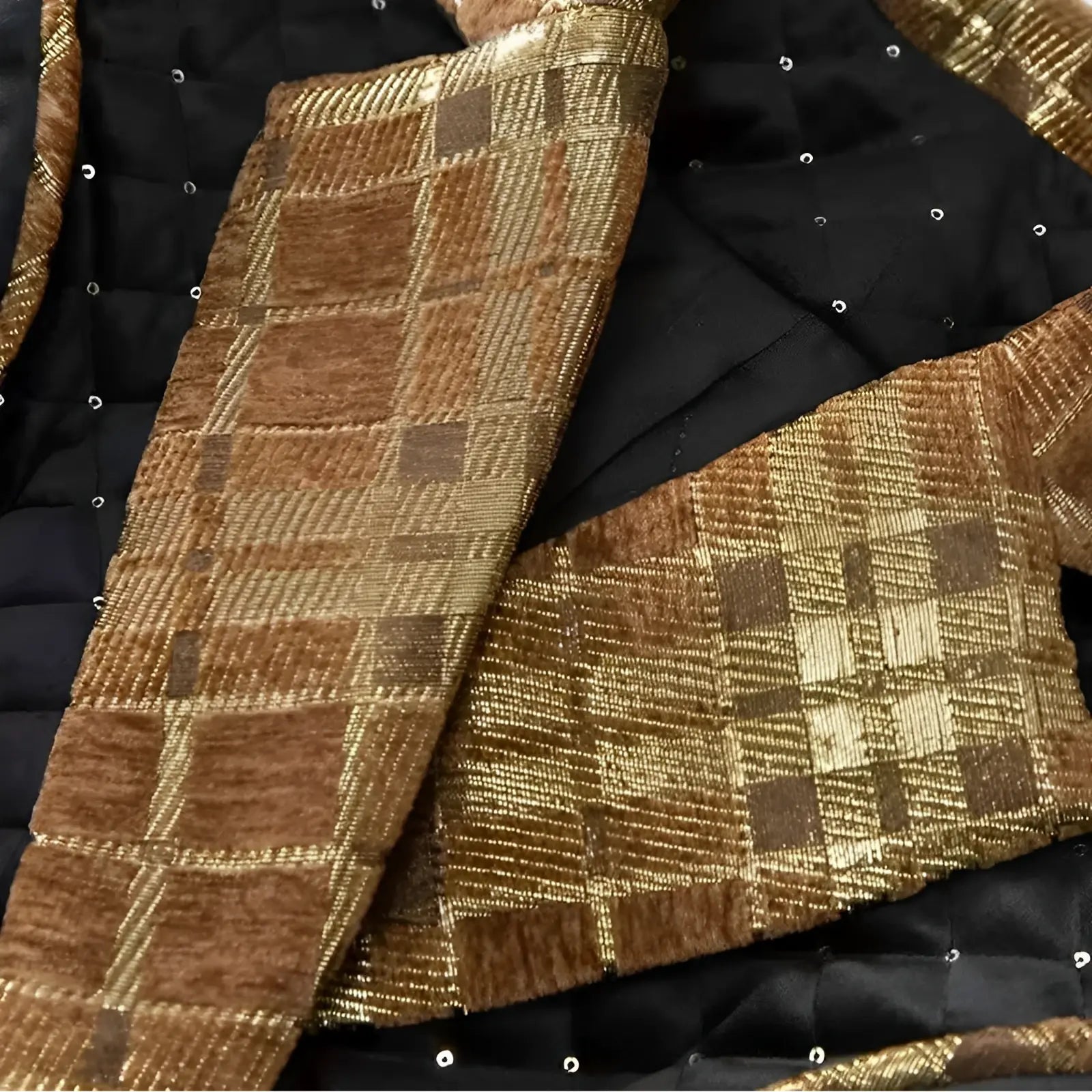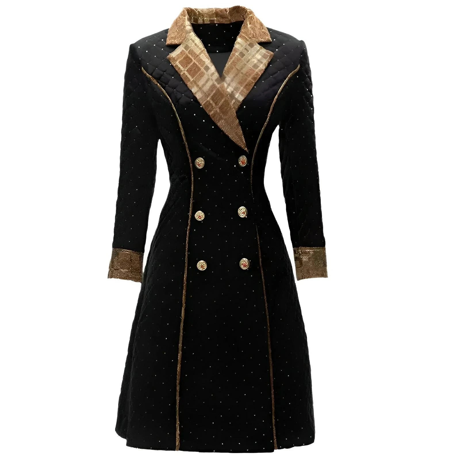 This sophisticated coat features a smooth, detailed fabric that offers a modern take on traditional outerwear. The coat has a tasteful accent collar, and a tailored fit, accentuating the overall silhouette. The coat falls to a mid-length, making it versatile for both casual and formal occasions, easily pairing with various outfits. Define your presence.