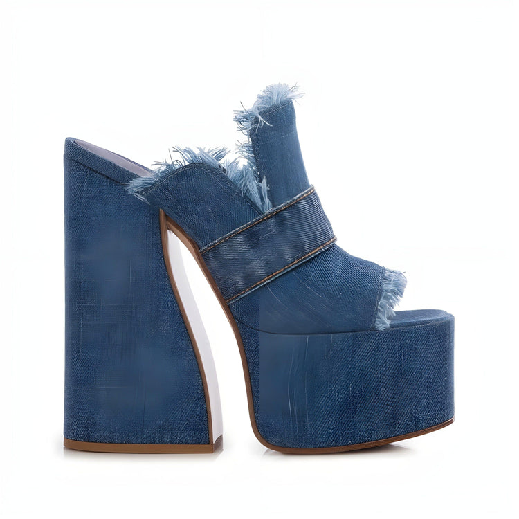 Indulge in luxury. Elevate your style with the Denim Platform Pumps.