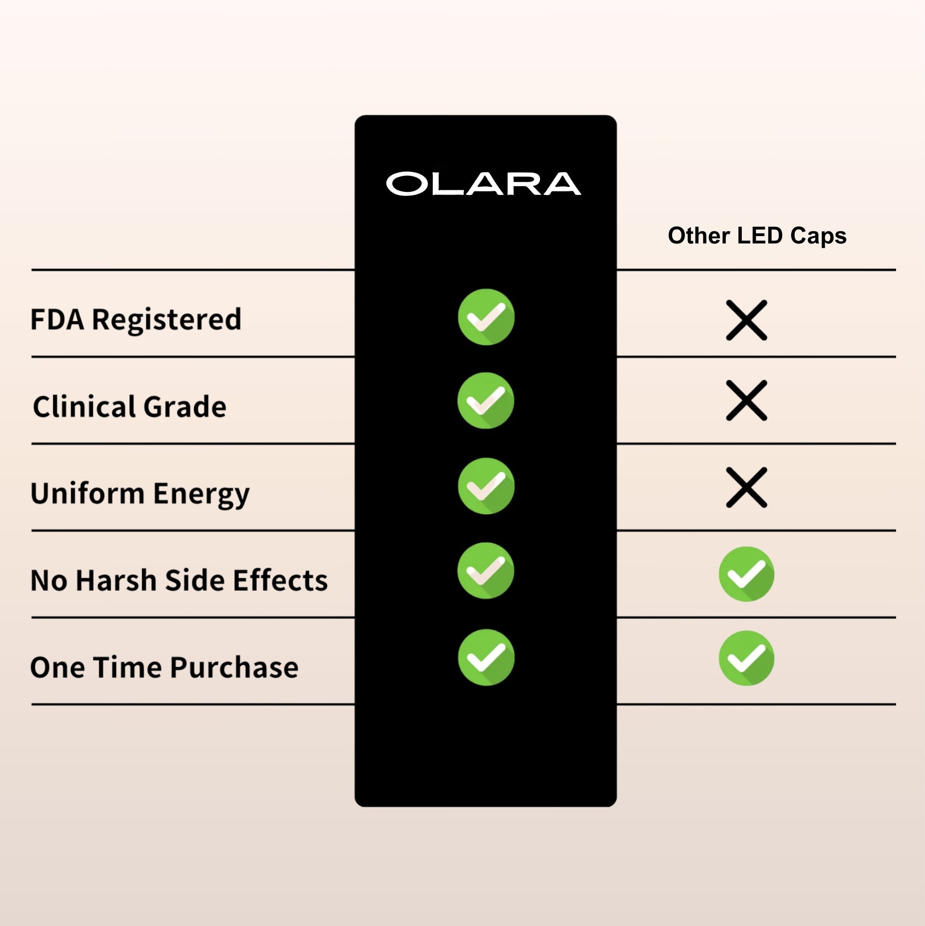 - Olara LED Cap: $149 one-time, no ongoing costs, no side effects
