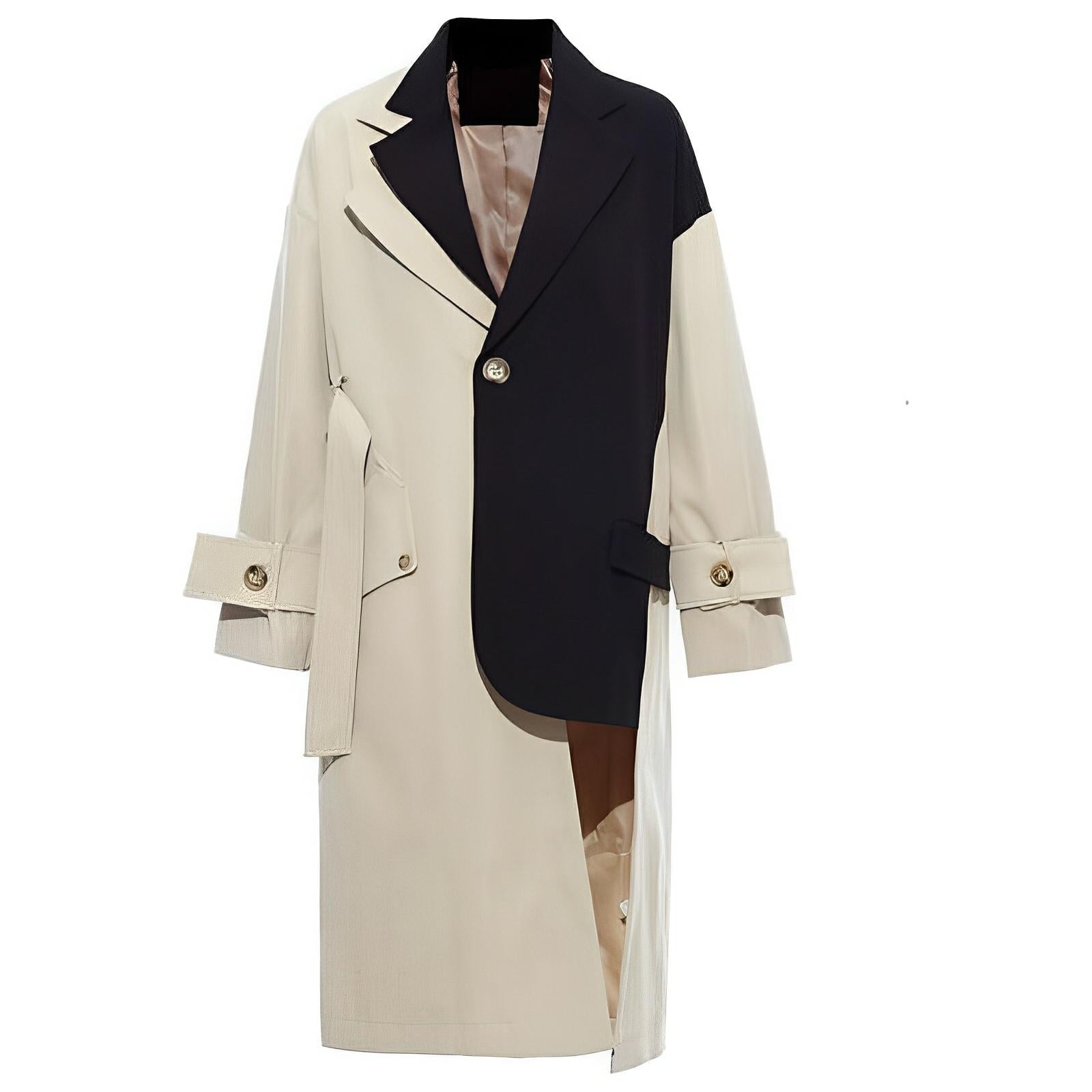 Indulge in luxury. Elevate your style with the Zia Contrast Panel Trench Coat.