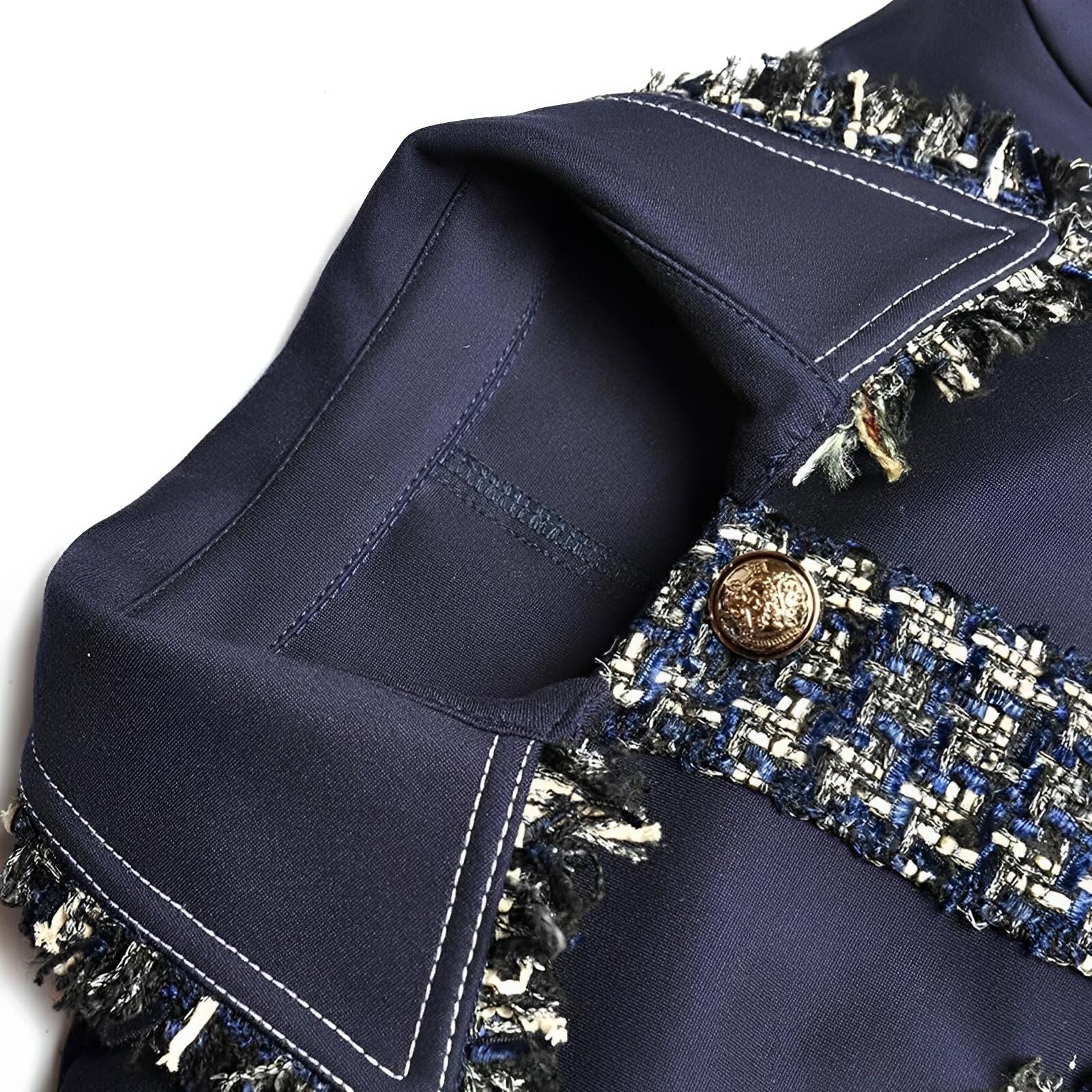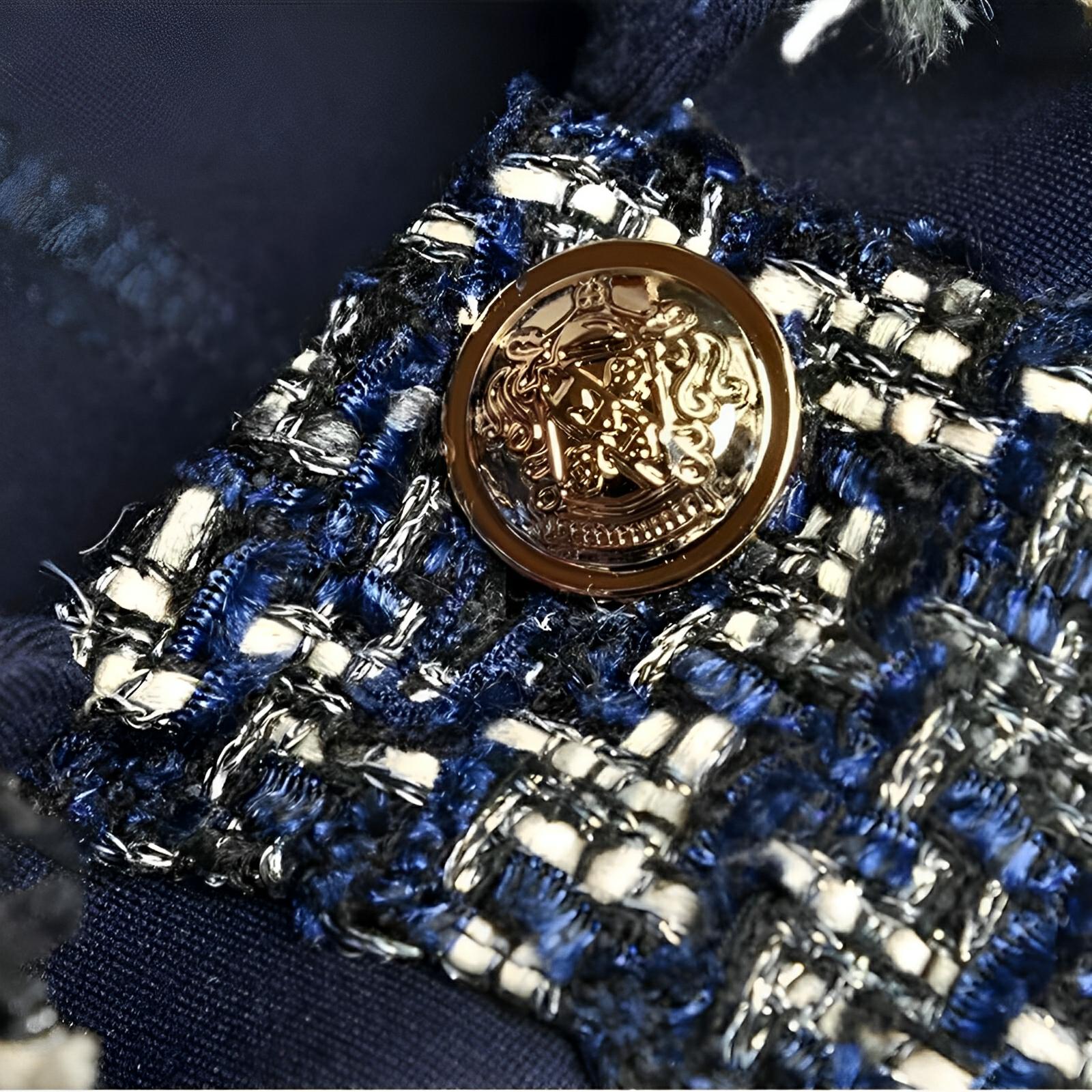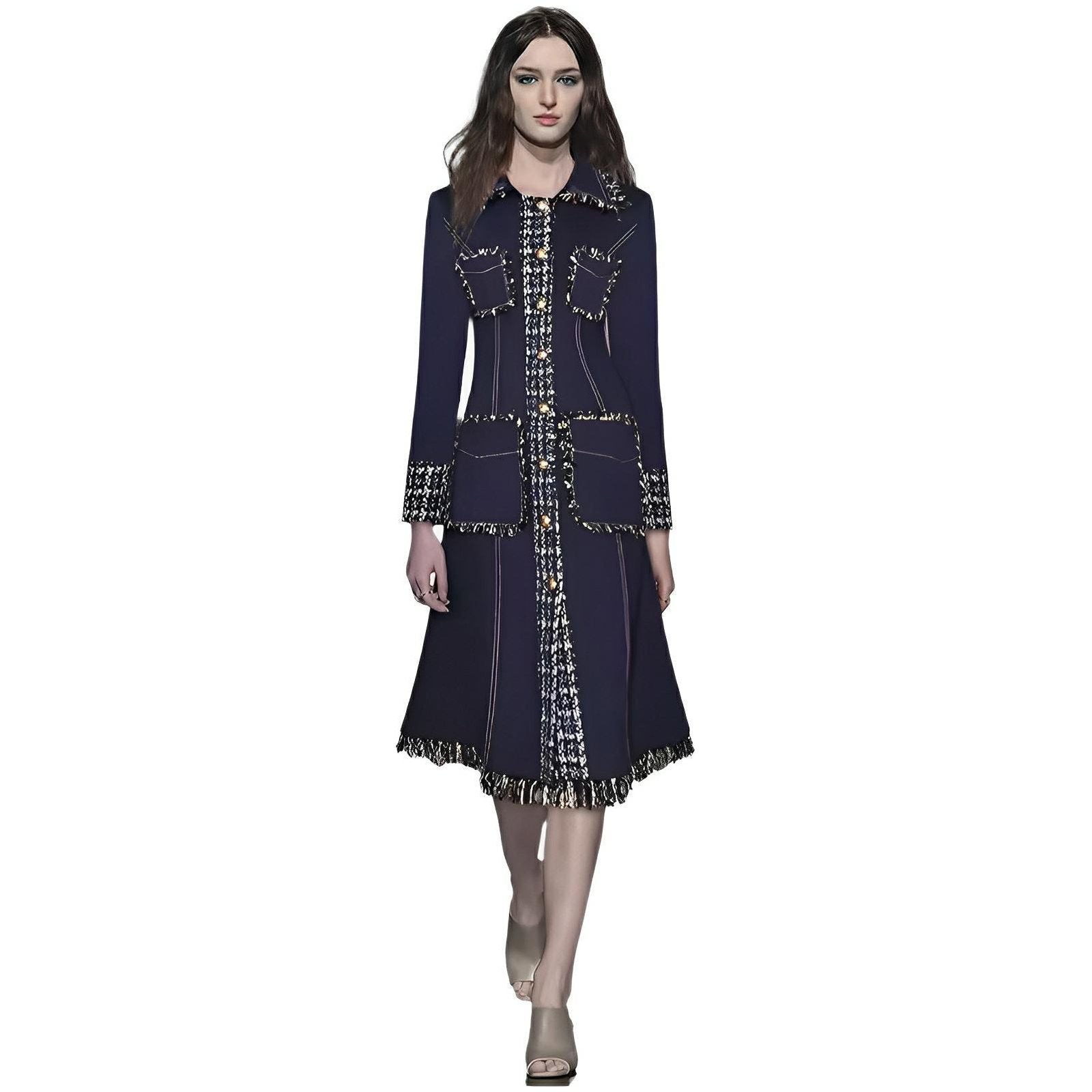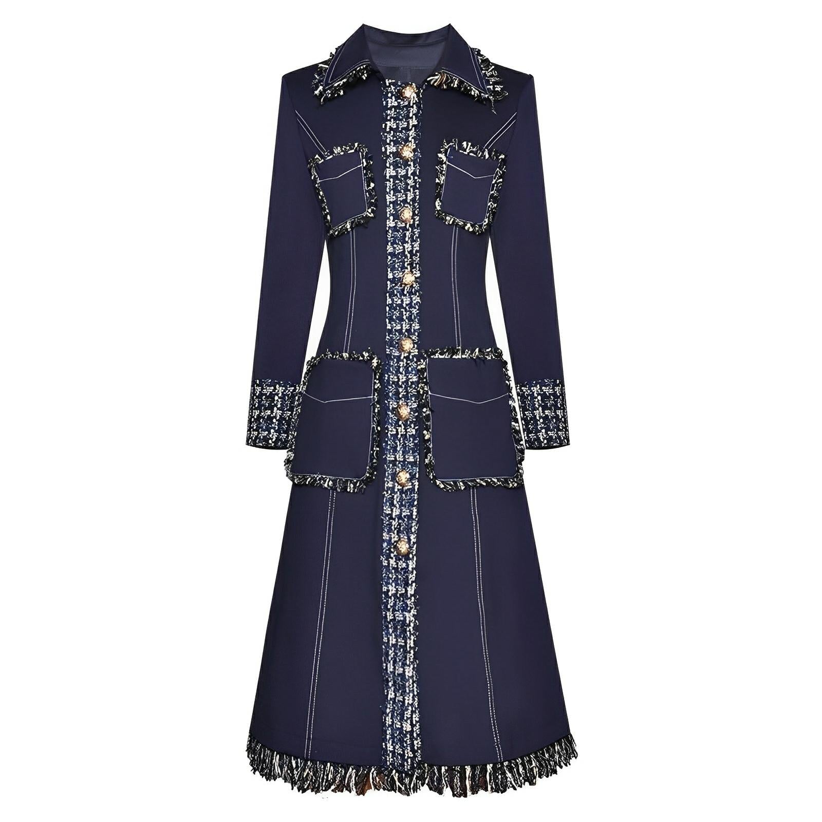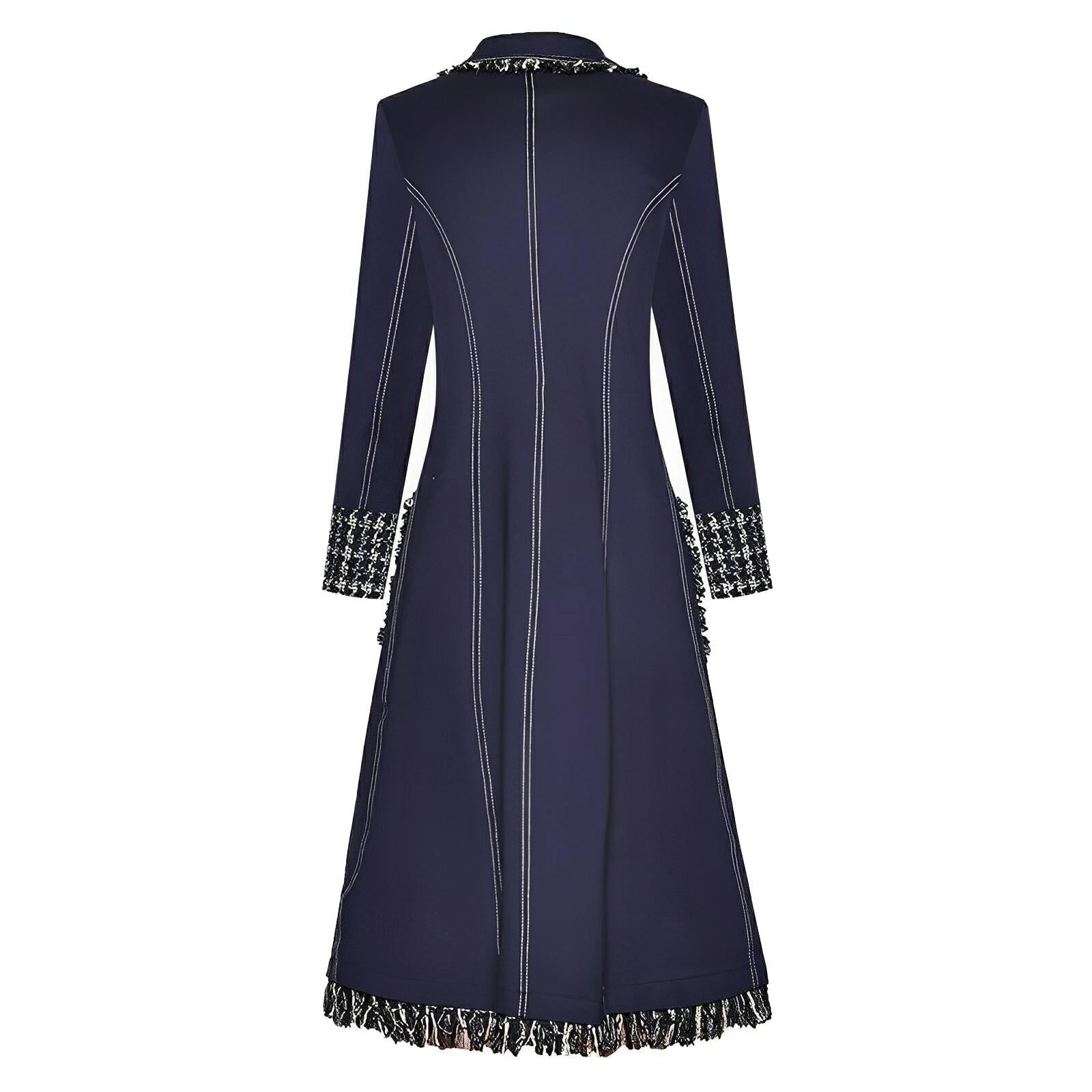 This elegant coat features a tailored silhouette with an accent collar and a full button front. It is adorned with intricate detailing, creating a romantic and captivating design. The overall fit is structured yet flowing, giving it a sophisticated and eye-catching appearance perfect for formal or fashionable casual occasions. Make a statement.