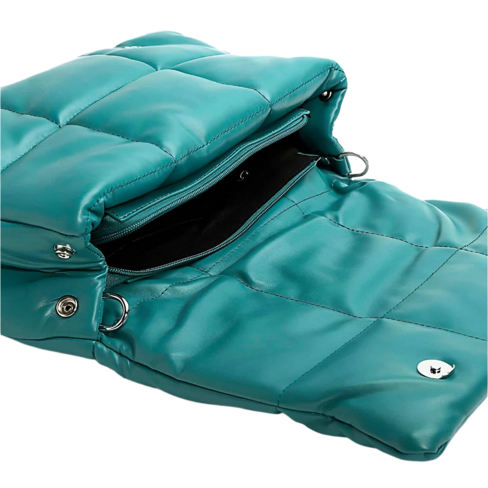 This unique shoulder bag features a puffer design with a sophisticated silhouette that adds a contemporary flair. An accent shoulder strap allows for versatile carrying options, making it suitable for casual outings or dressier occasions. The overall structure combines playful elements with a modern aesthetic, making it a statement accessory. Turn heads.